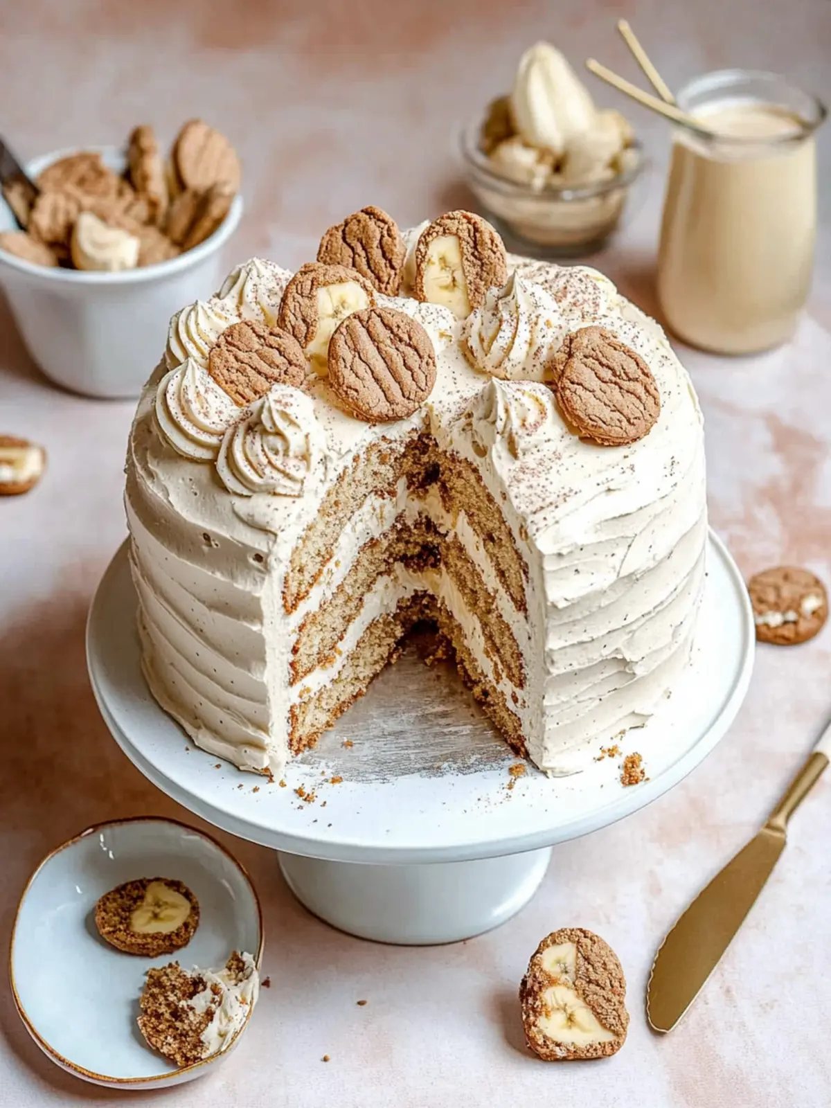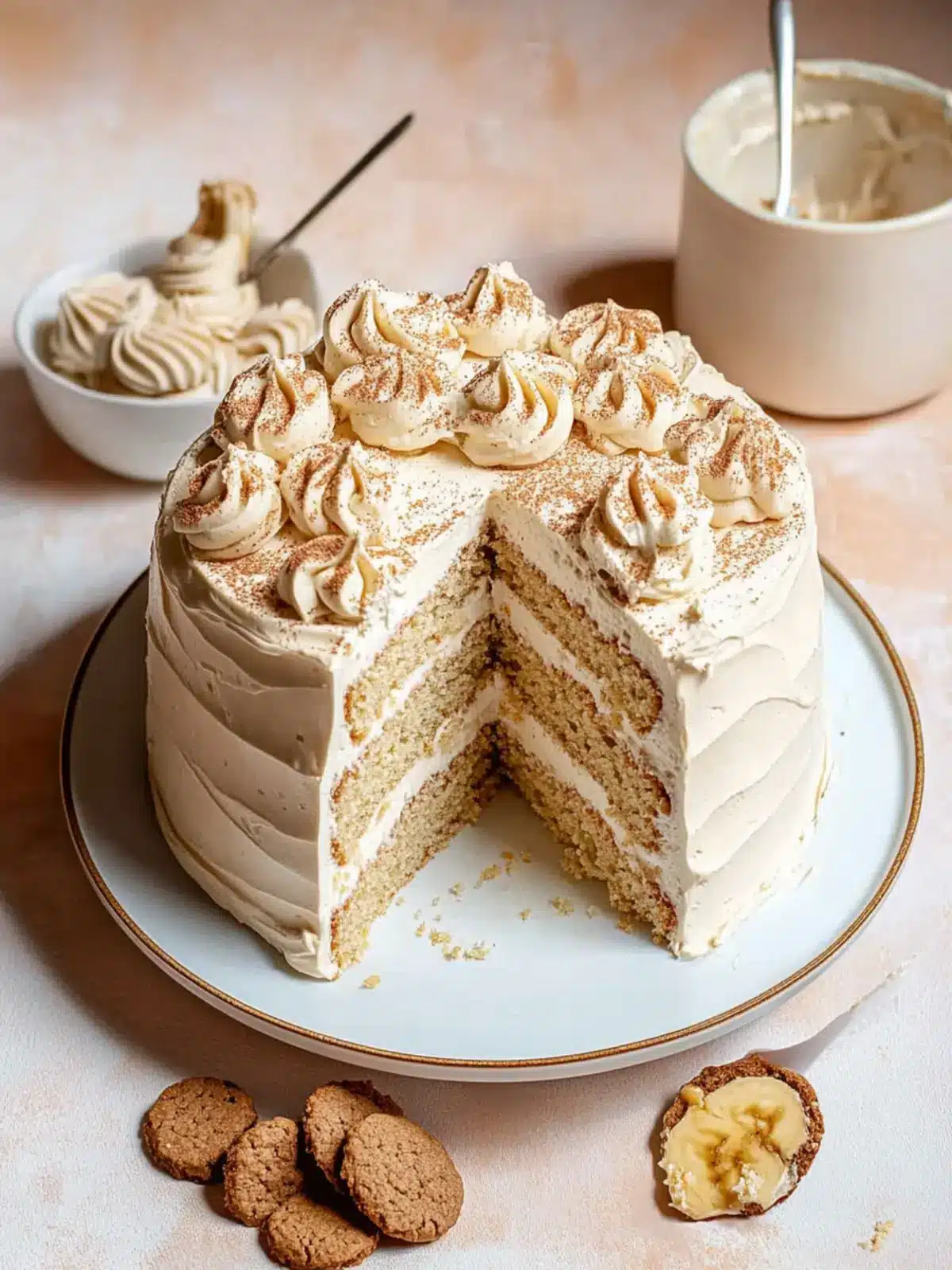 Decorate Wisely: Feel free to customize your Banana Cookie Butter Cake; sprinkling cookies or dried banana chips can make your creation even more delightful!