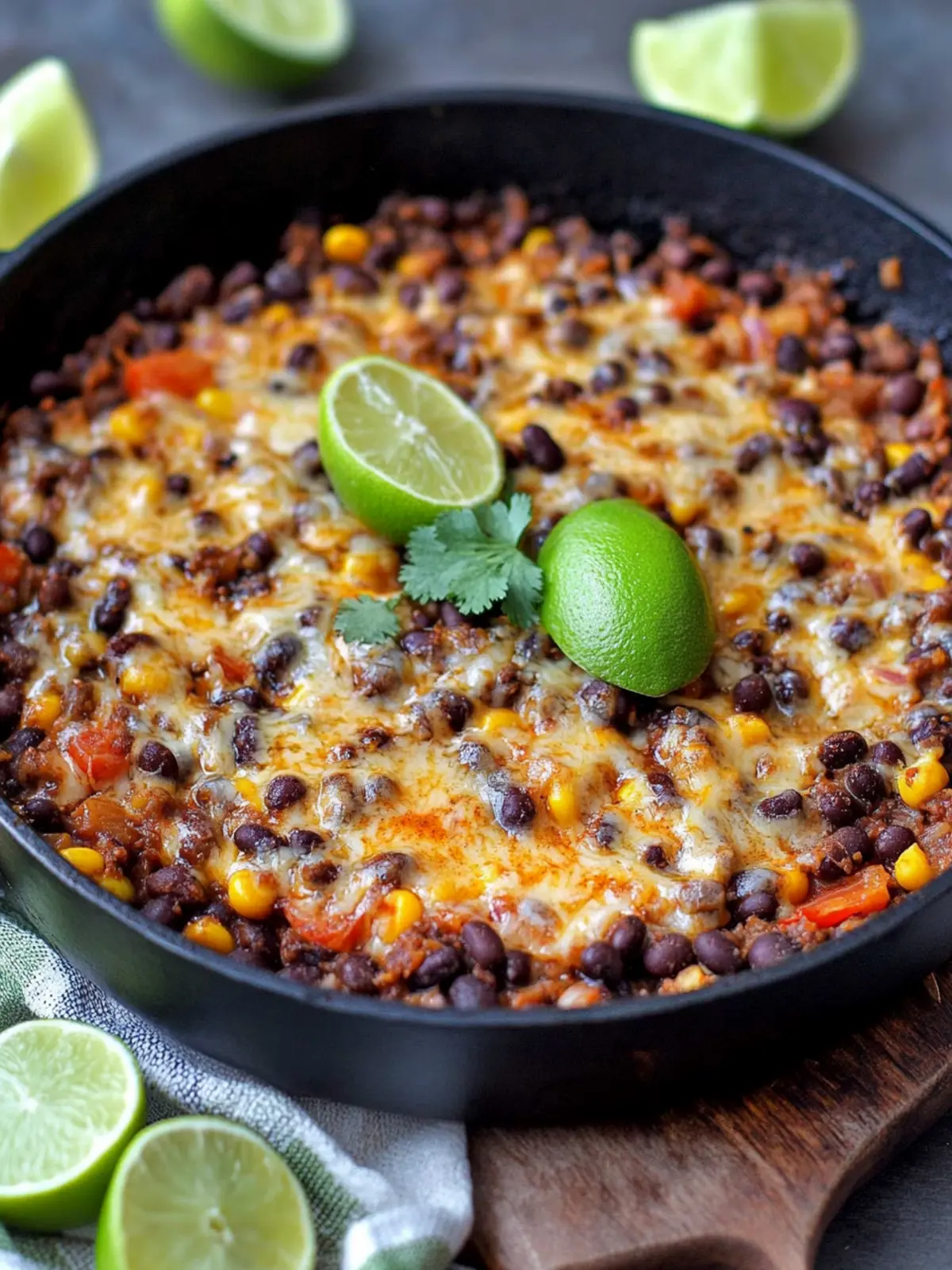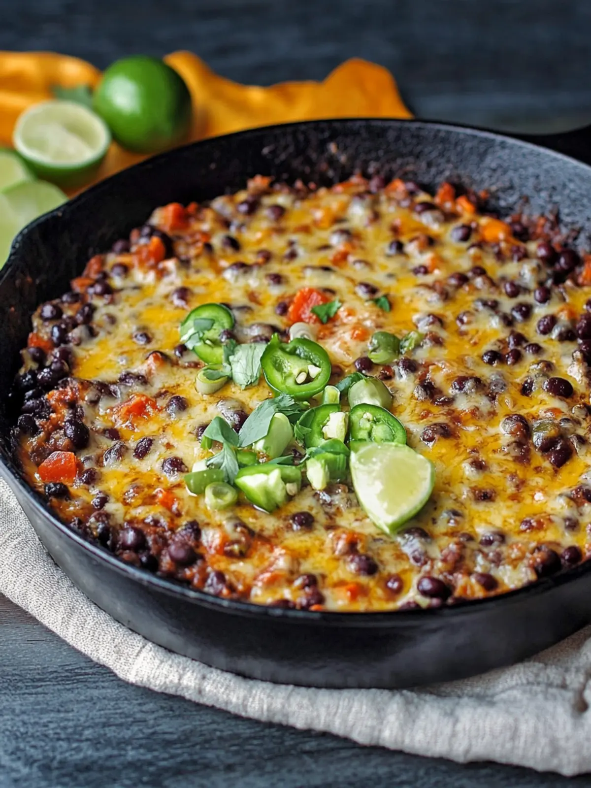 Serving Suggestions: Serve warm, garnished with fresh lime and enjoy the comforting goodness of your Cheesy Spicy Black Bean Skillet!