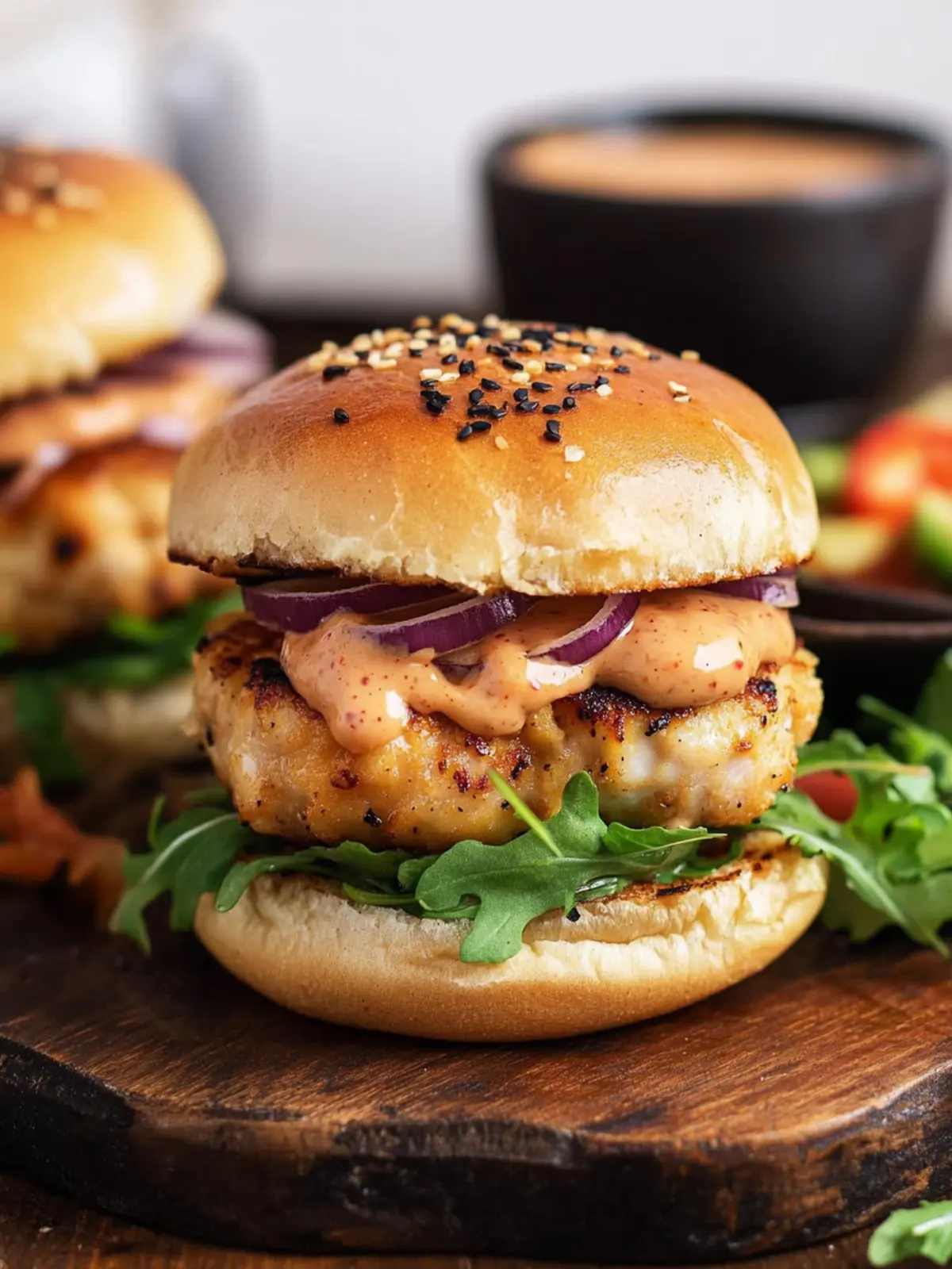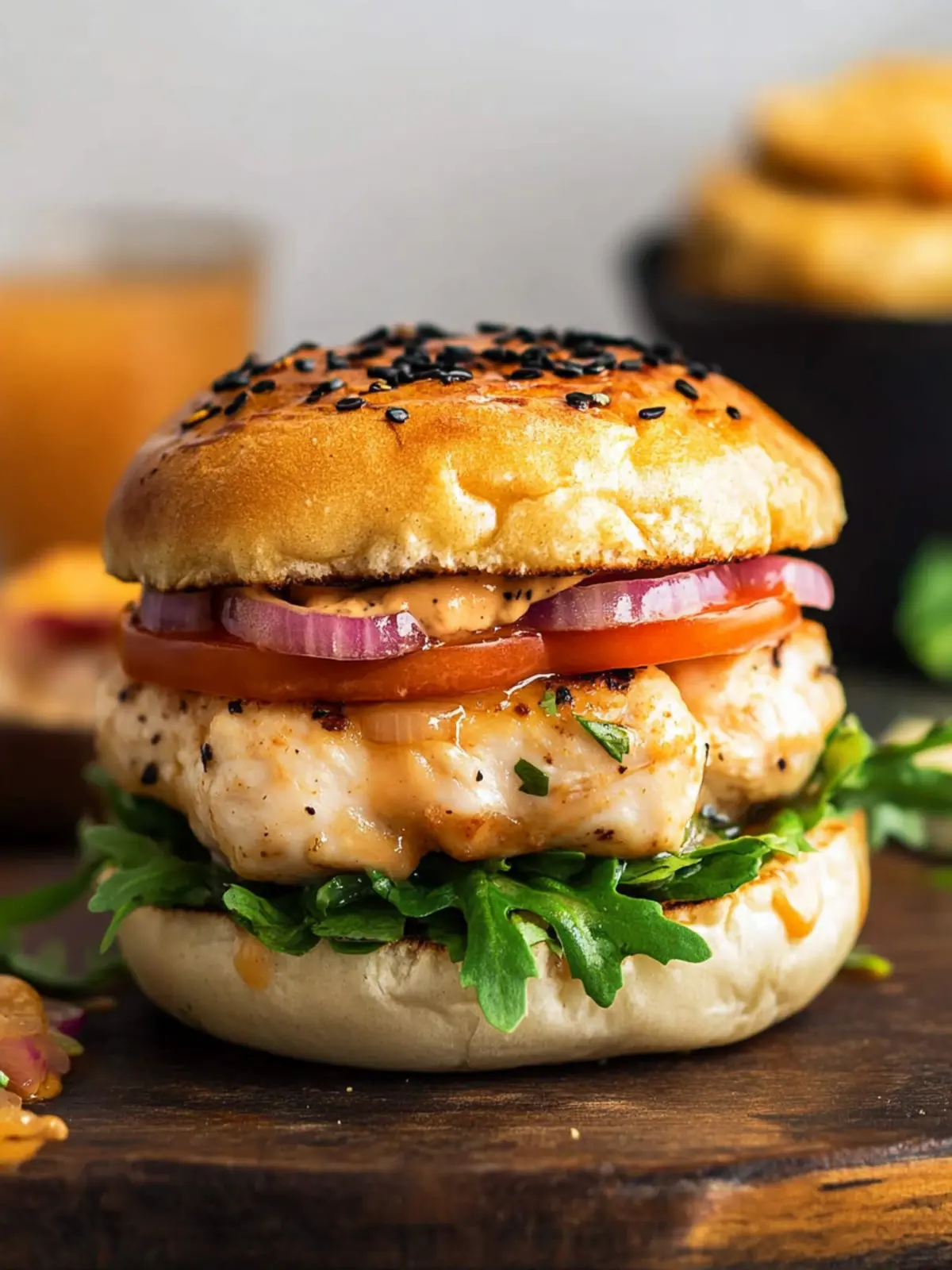 Delicious Chicken Burgers with Bang-Bang Sauce that are juicy, flavorful, and perfect for dinner.