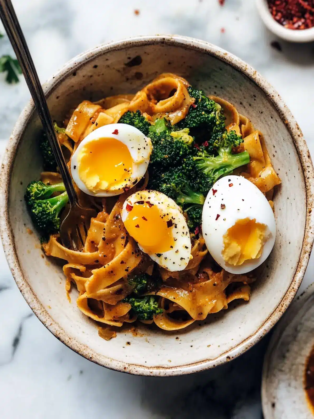 Imagine al dente pappardelle bathed in a savory hoisin and chili sauce, with tender, roasted broccoli that’s surprisingly fun to smash for that perfect bite. And let’s not forget the crowning glory: soft eggs that ooze richness with every cut. This recipe effortlessly elevates dinner from mundane to magnificent.