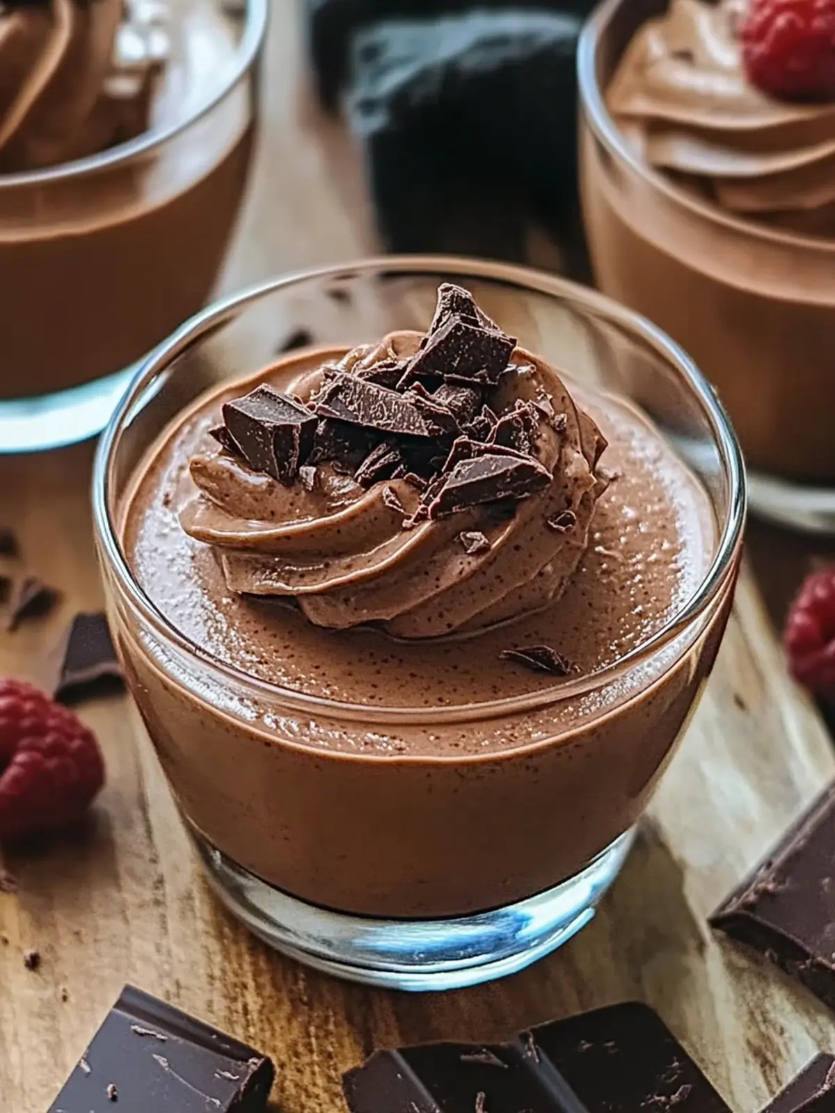 Garnish: Before serving, top each mousse with whipped cream, sprinkle on dark chocolate shavings or cacao nibs, and add a handful of fresh berries for a gorgeous presentation.