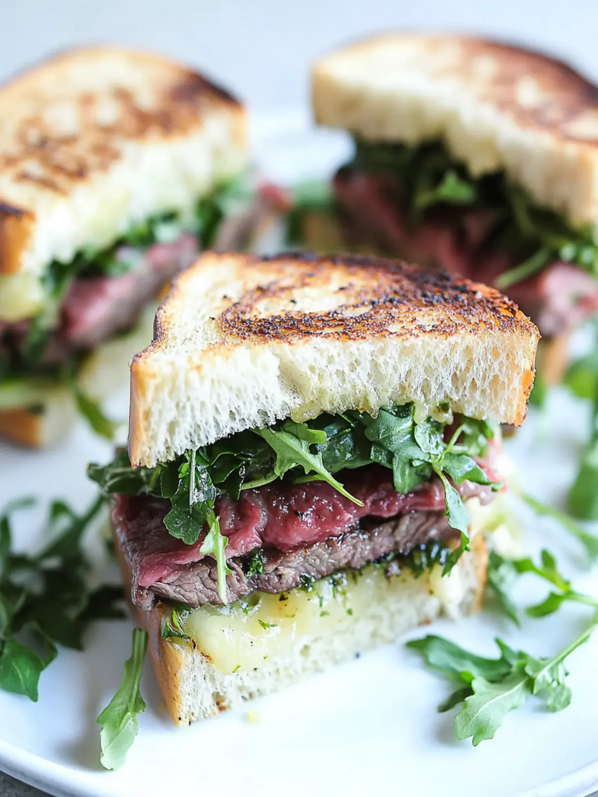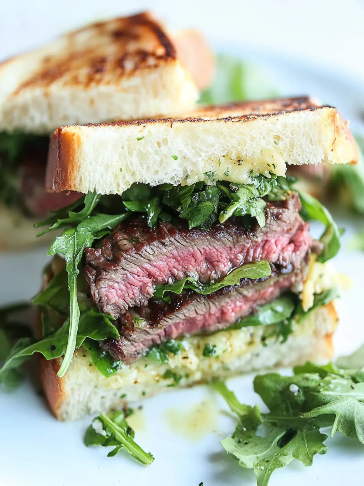 - Assemble the sandwiches: Spread a thin layer of cowboy butter on one side of each slice of country loaf bread. With the buttered side facing up, pile on a generous handful of arugula and the sliced steak, then crown with another slice of bread, buttered side down. Serve these delightful sandwiches immediately for the best experience!