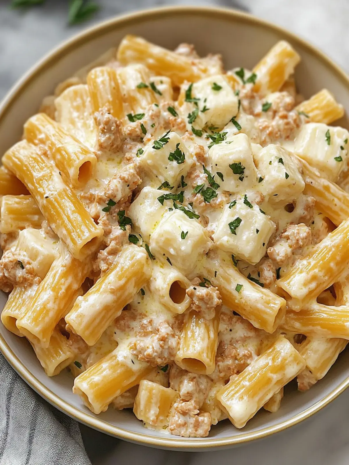 These Creamy Rigatoni with Boursin Cheese are perfect for busy weeknights! You can brown the meat, onions, and garlic, then stir in the seasonings up to 24 hours in advance and refrigerate the mixture in an airtight container. The pasta can also be cooked al dente, tossed lightly with olive oil to prevent sticking, and stored for 3 days. When you’re ready to serve, simply reheat the meat mixture, add the chicken broth, then toss in the prepared pasta. Stir in the Boursin cheese until creamy for that delicious finish! With these prep-ahead steps, you’ll have a comforting dinner ready with minimal effort, just as tasty as if made fresh.