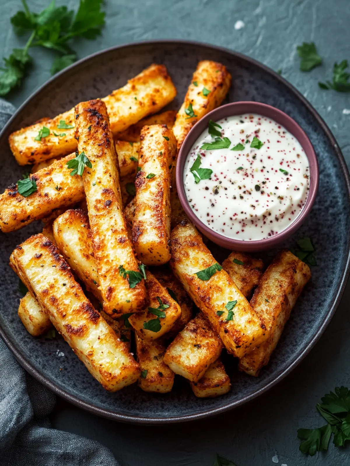 Crispy Air-Fried Halloumi Fries with Spicy Yogurt Dip Delight