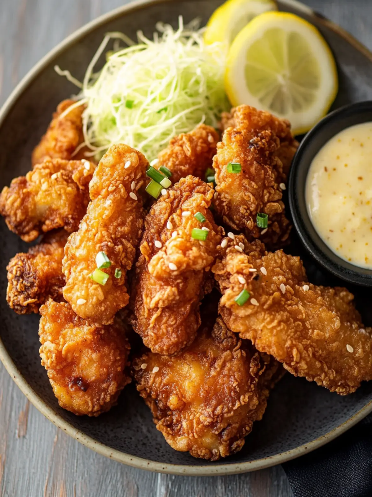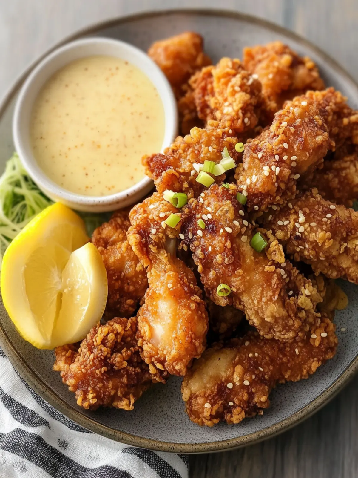 - Serve: Serve the chicken hot alongside lemon wedges and a creamy Kewpie mayo dipping sauce for extra indulgence.