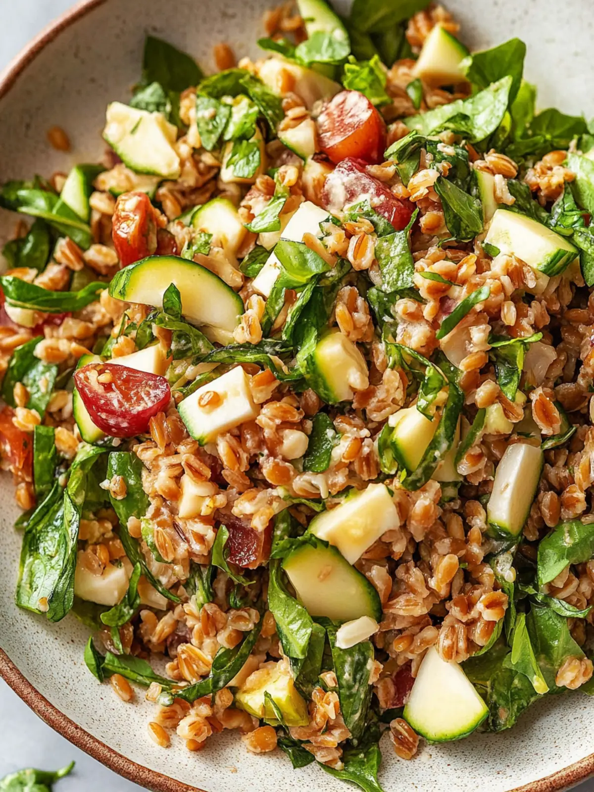 Bold flavors: This Farro Salad combines the robust nuttiness of farro with the refreshing crunch of green apple, creating a dish that bursts with flavor in every bite.
