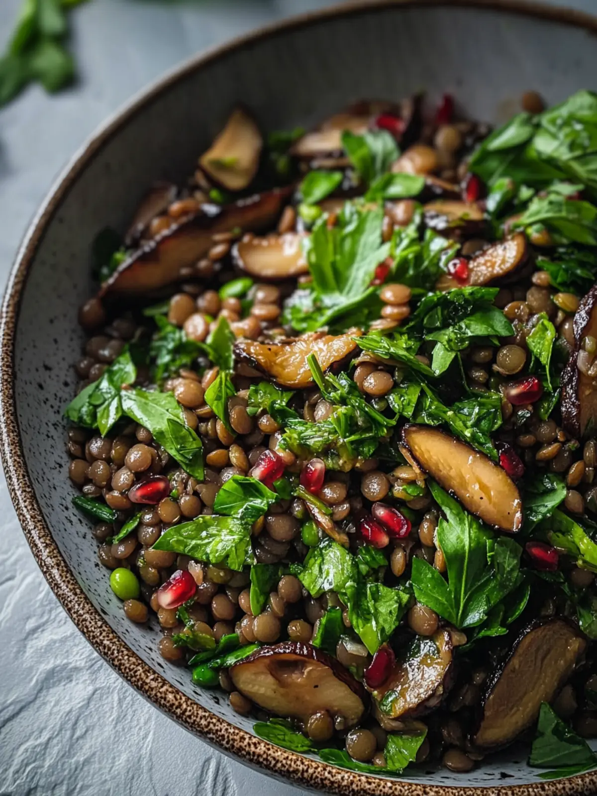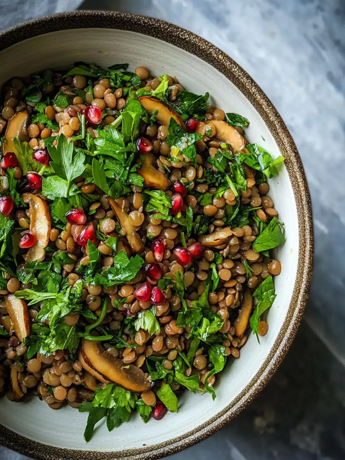Delicious French Lentil, Maitake & Herb Salad with Pomegranate Molasses