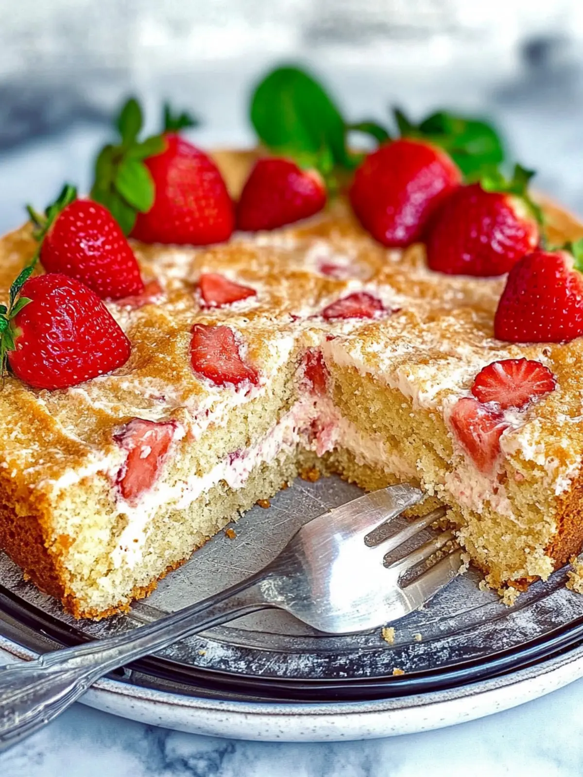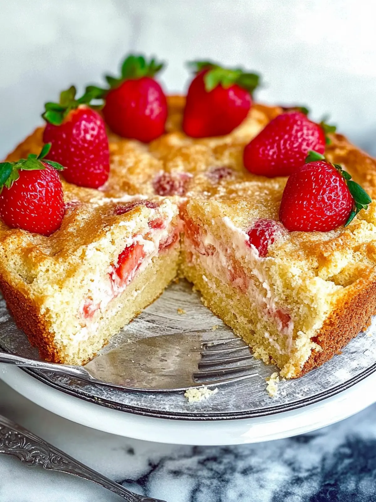 Bursting with Flavor: The fresh strawberries provide a sweet and tangy contrast to the rich buttery cake, creating an unforgettable taste experience.