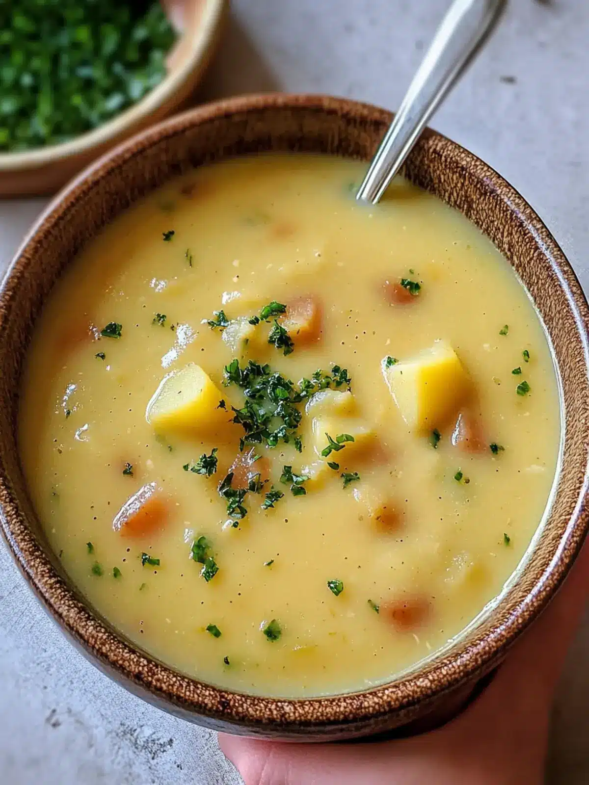 Deliciously Creamy Vegan German Potato Soup (Kartoffelsuppe)