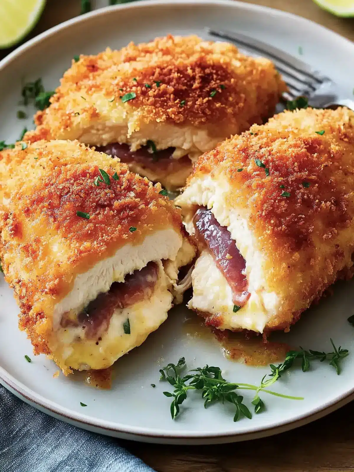 Absolutely! To make gluten-free Chicken Cordon Bleu, substitute the all-purpose flour with a gluten-free flour blend and use gluten-free breadcrumbs instead of Panko. There are many options available that mimic the texture beautifully. Just be sure to double-check the labels for allergen information to cater to any dietary restrictions.