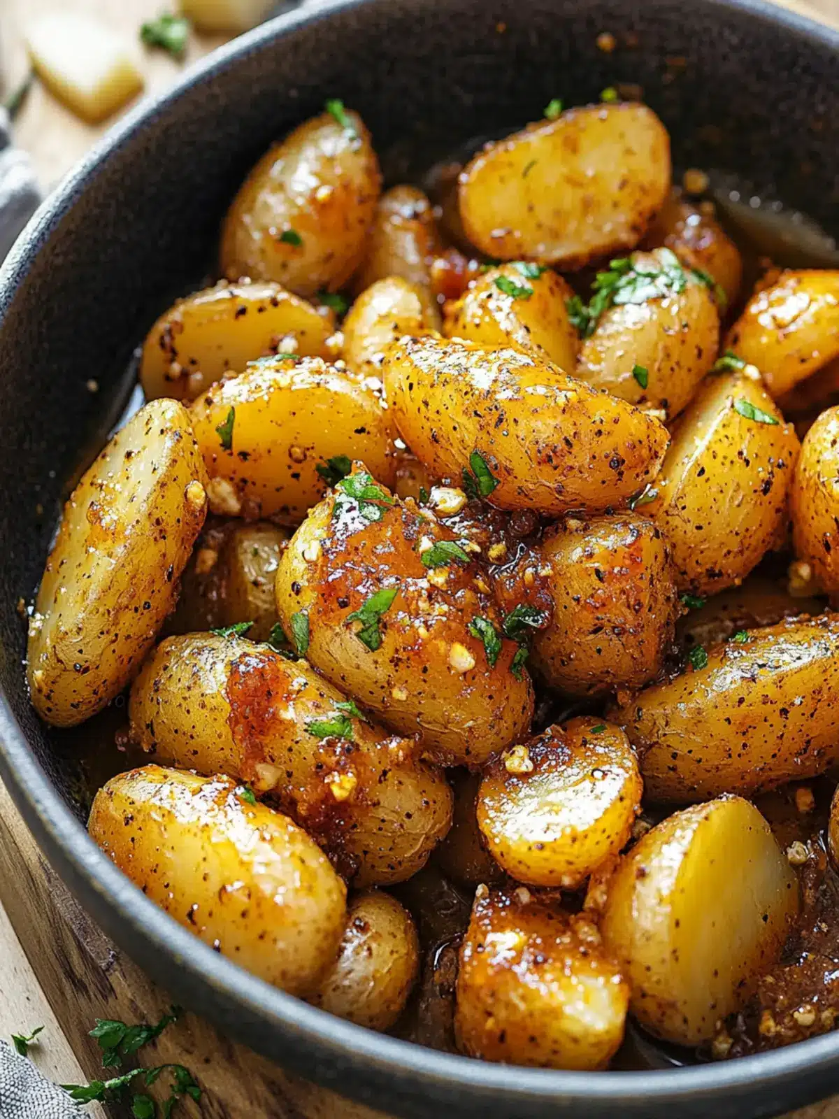 4. Coat and Finish: Increase the heat to medium-high and cook for another 3-5 minutes, allowing the glaze to thicken and coat the potatoes beautifully. Garnish with fresh chives before serving to add a vibrant touch!