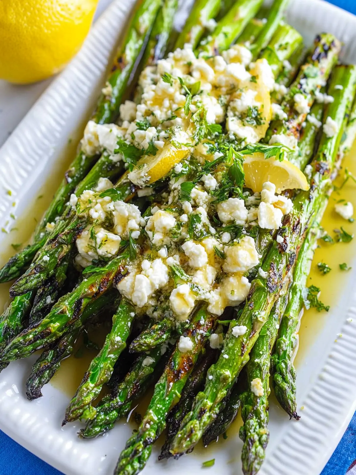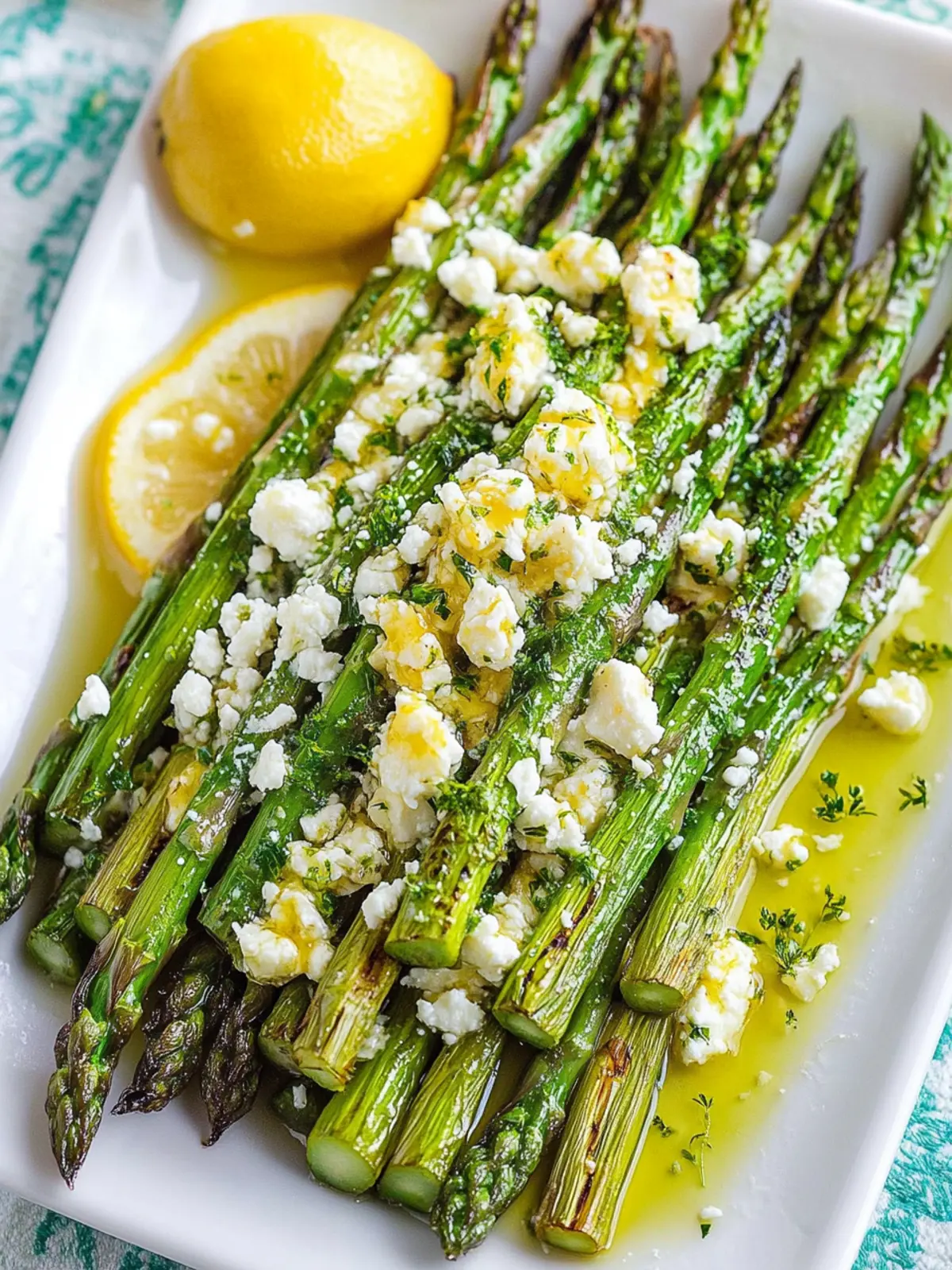 Vibrant flavors come alive: The zesty lemon and creamy feta create an irresistible contrast that enhances the asparagus’s natural taste.