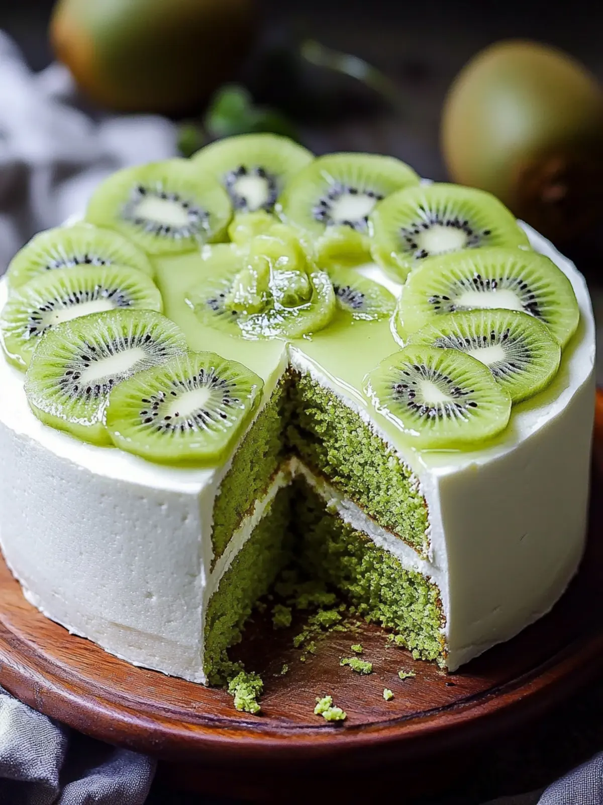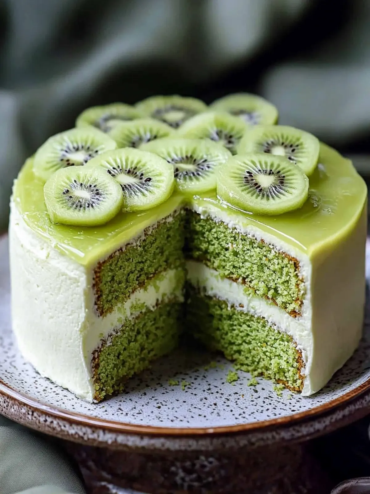 Vibrant Flavors: This cake beautifully marries the earthy richness of matcha with the tropical zing of kiwi, creating a delightful taste sensation.