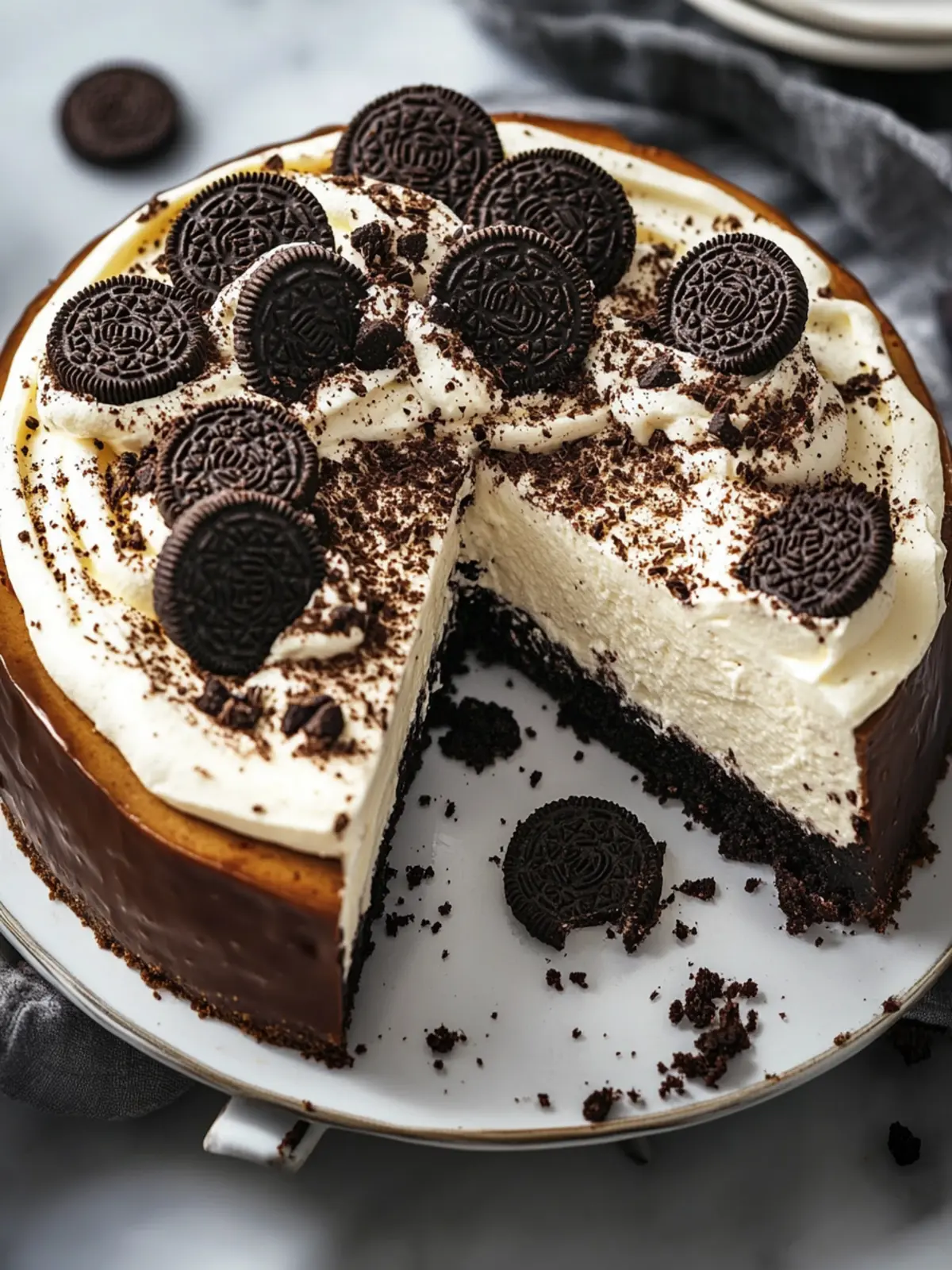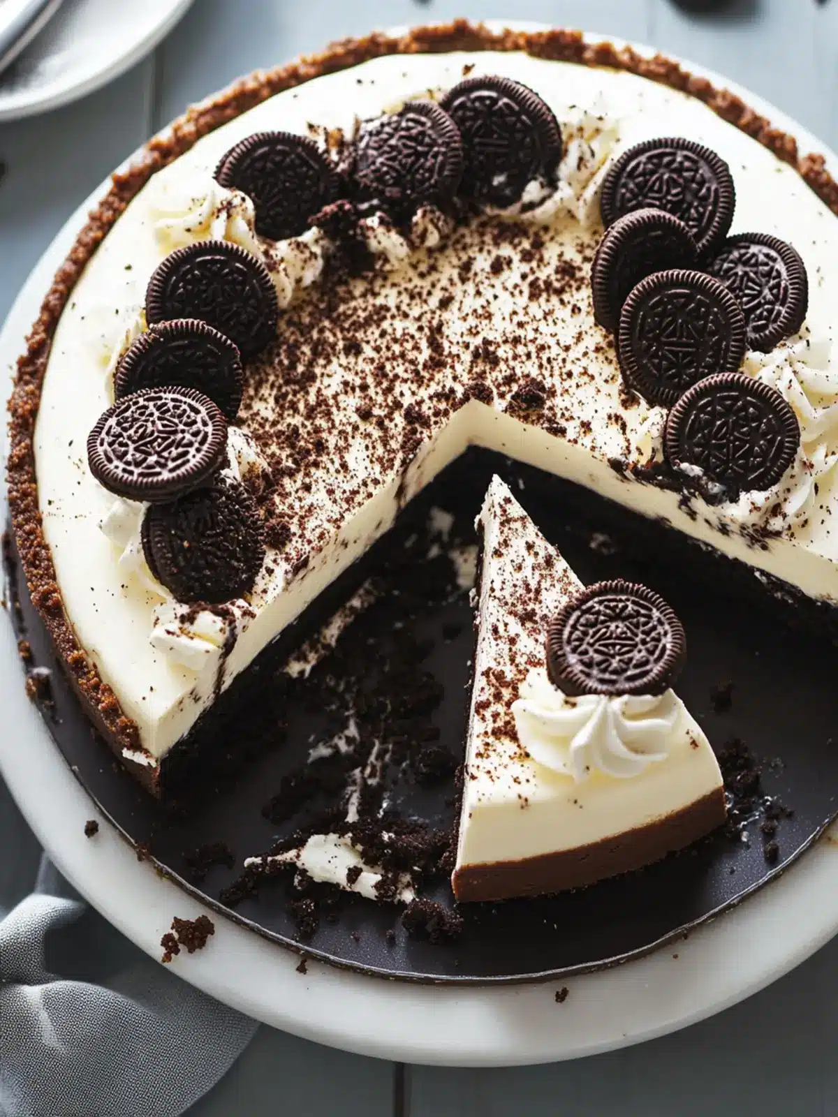 Indulgent Pleasure: This Oreo Cheesecake is a true indulgence, blending rich chocolate flavors with a creamy filling that delights every bite.