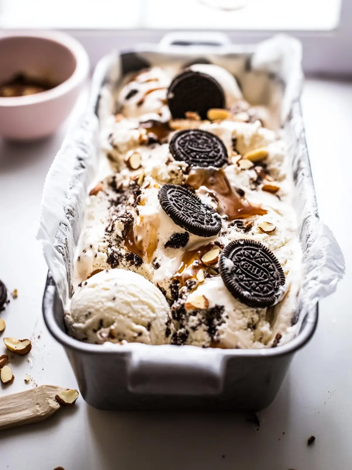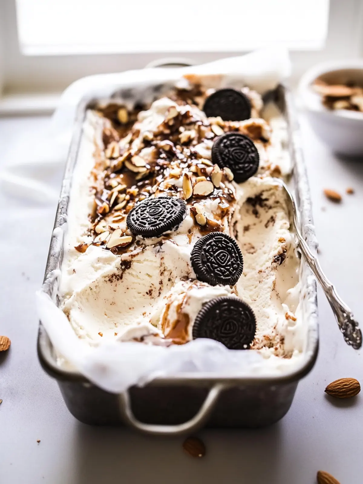 Indulge in Oreo Salted Almond Caramel Swirl Homemade Ice Cream
