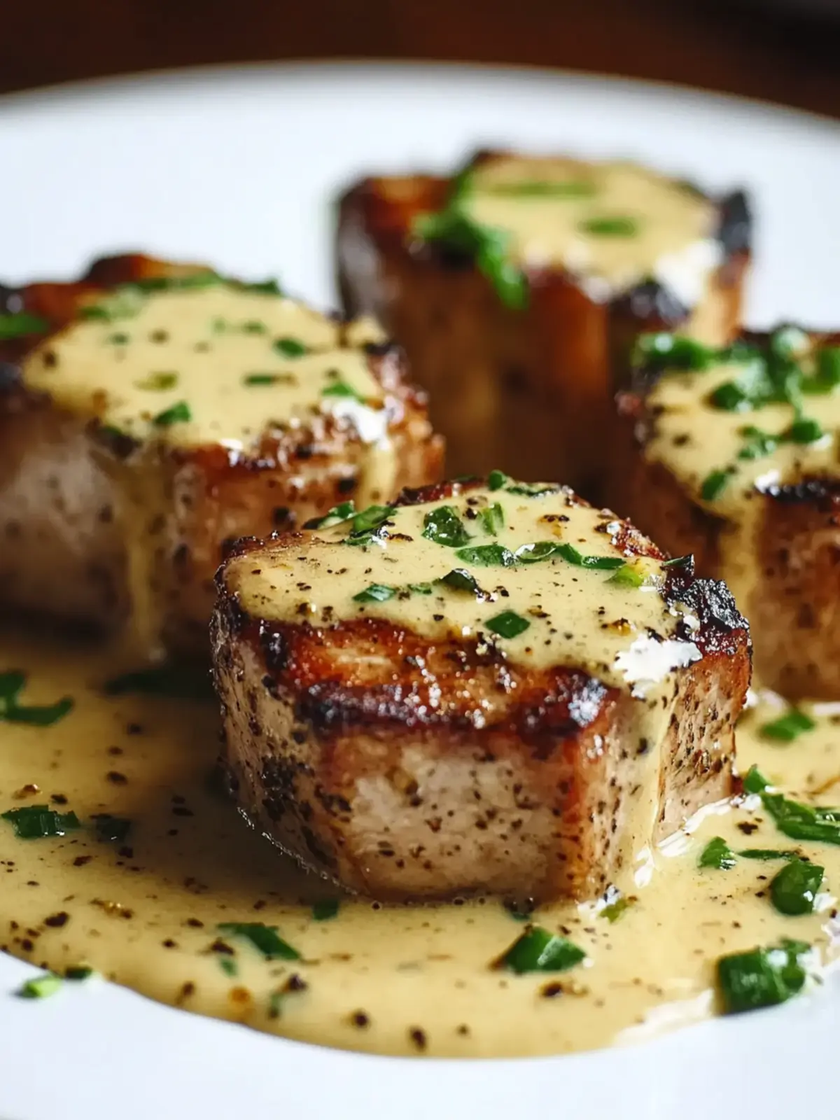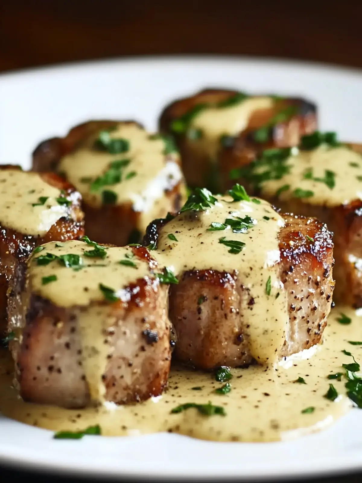 10. Slice the rested pork into 1/2-inch medallions and arrange them on a platter. Spoon the creamy Dijon sauce over the top, adding a sprinkle of parsley for a beautiful finish. Serve with lemon wedges on the side for a zesty touch.