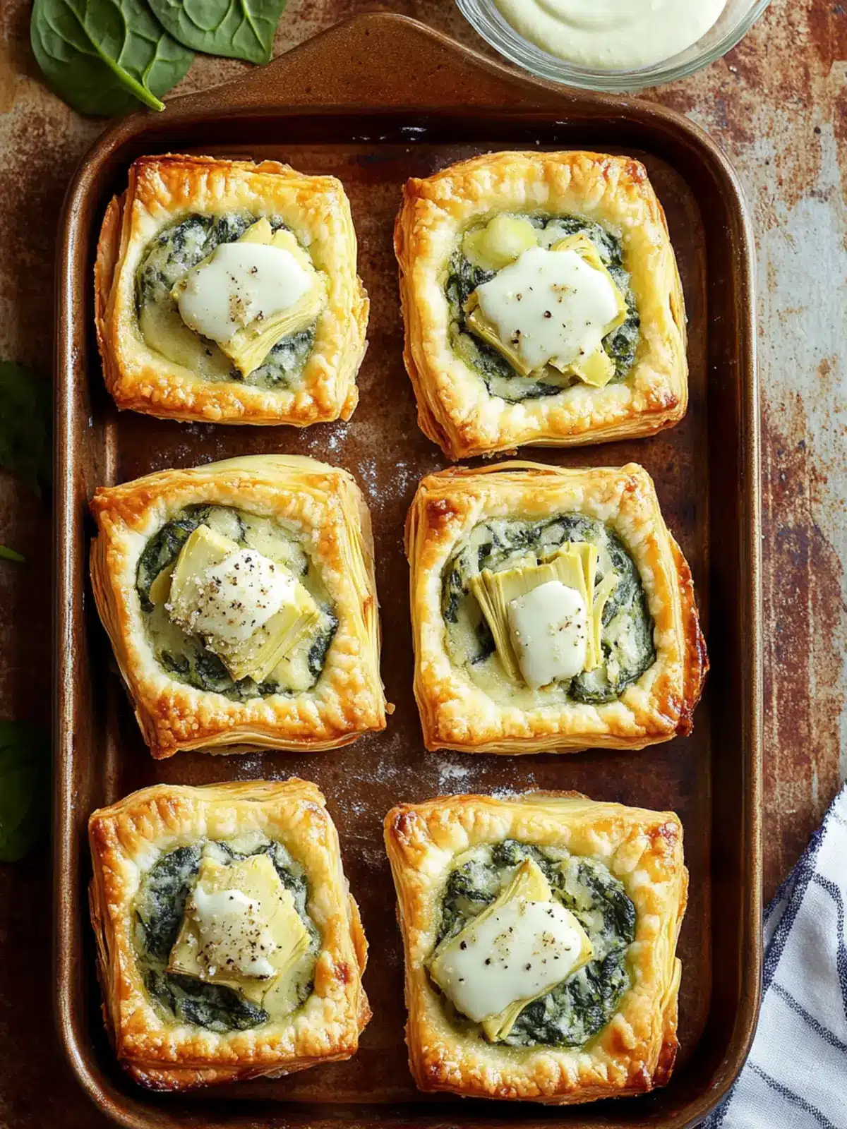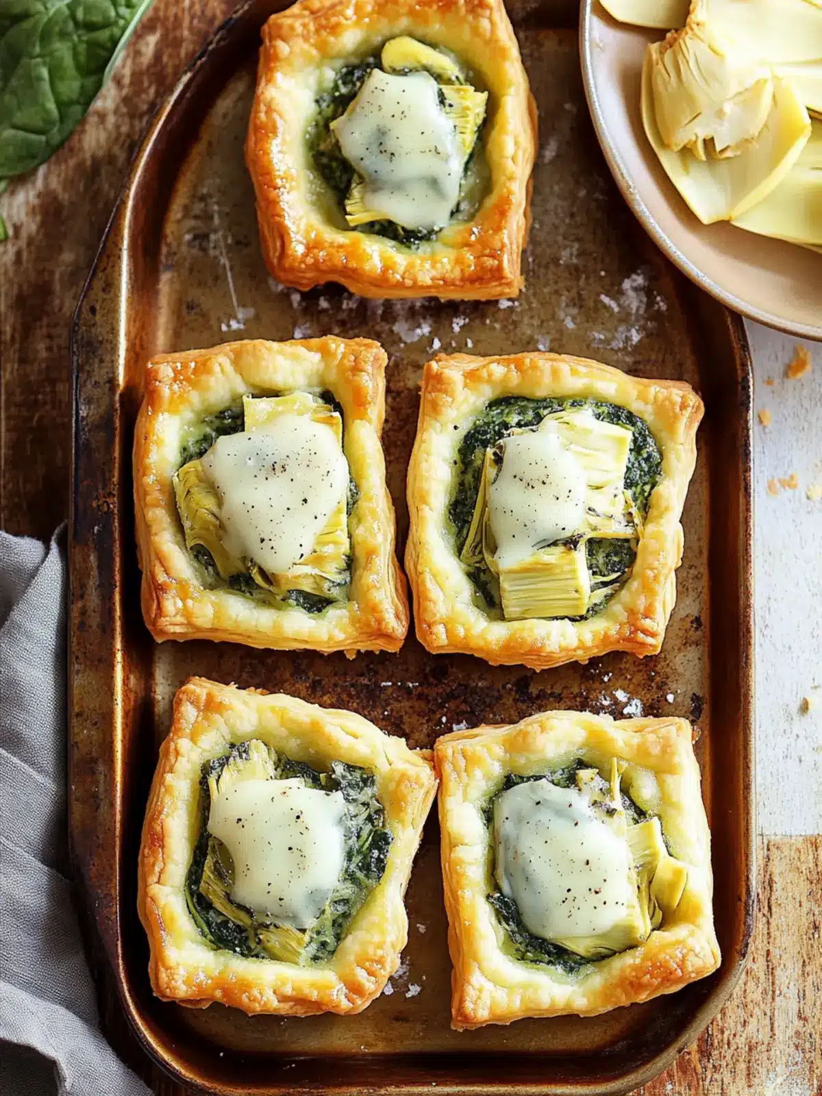 What I love most about these tarts is their versatility. Whether you’re hosting a lavish dinner party or simply looking for a satisfying snack, these flaky puff pastry treats elevate any occasion. The creamy, cheesy spinach and artichoke filling is not just a crowd-pleaser; it’s an experience that transforms humble ingredients into something extraordinary. And don’t worry, they come together in a breeze, making them a perfect antidote to the fast-food monotony. So, pull that frozen puff pastry from the freezer and let’s create some magic!