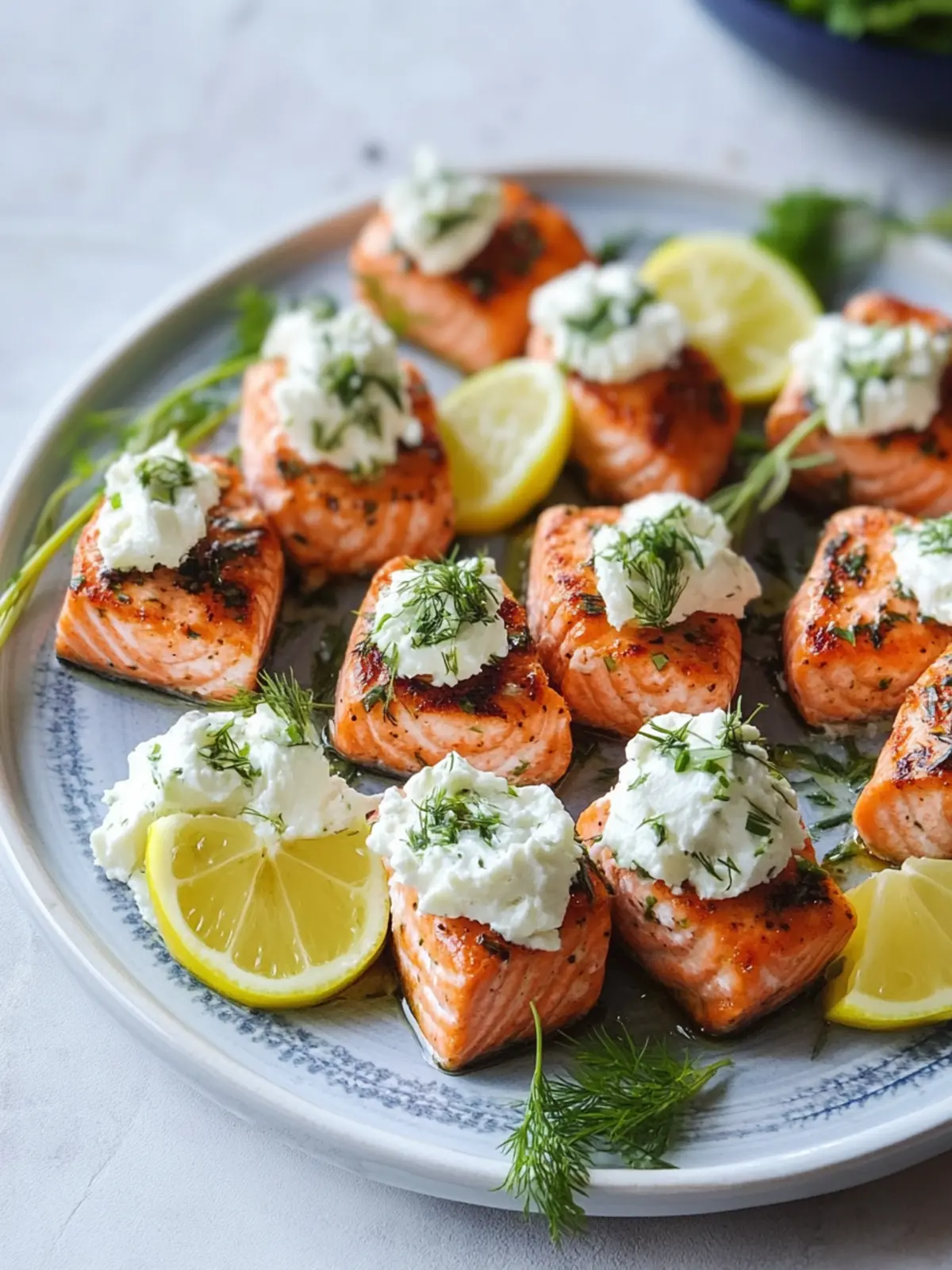 Zesty Sumac Salmon Bites with Creamy Herb Whipped Feta